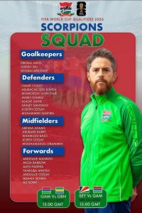 Gambiaj.com – (Banjul, the Gambia)-Johnathan McKinstry has just unveiled a 23-man squad for Gambia’s final two World Cup qualifiers against Gabon and Seychelles later this month. Adama Bojang and Abdoulie ‘Bambalie’ Sanyang missed through injury while Sheriff Sinyan will also sit out the window to serve a one match suspension for card accumulation. James Gomez and Abdoulie Ceesay also returned as replacements.